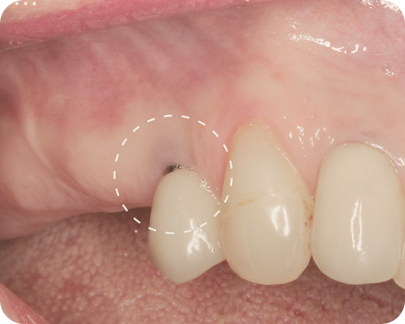 Жалоба на косметический дефект – наличие тёмного участка в области имплантата, который был установлен более 10 лет назад в позиции 4-го зуба и снижение жевательной активности